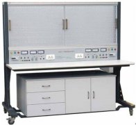实训台由实训屏(内置电源)、实训桌、实训储物柜三大部分组成。